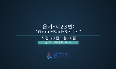 하나님의 꿈을 함께 이루어가는 믿음의 가족, 선두교회입니다. 홈설교ㆍ찬양설교 설교 주일오전주일오후열린 분류 수요새벽기도회 검색어 필수 설교, 예배명, 설교자, 성경 키워드를 입력해주세요. 검색 전체 281건 수요 보김의 은혜 설교자 정효상 목사 날짜 2020-02-06 동영상 바로보기 수요 세월을 아끼라 설교자 김우석 목사 날짜 2020-01-31 동영상 바로보기 수요 내가 죽지 않고 살아서 설교자 박주철 목사 날짜 2020-01-22 동영상 바로보기 수요 욥기-시23편: Good-Bad-Better 설교자 최석제 목사 날짜 2020-01-16 동영상 바로보기 수요 착한 일꾼은 행복하다 설교자 황신기 목사 날짜 2020-01-08 동영상 바로보기 처음 이전 21페이지 22페이지 23페이지 24페이지 다음 맨끝