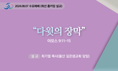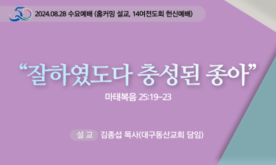 하나님의 꿈을 함께 이루어가는 믿음의 가족, 선두교회입니다. 홈설교ㆍ찬양설교 설교 주일오전주일오후열린 분류 수요새벽기도회 검색어 필수 설교, 예배명, 설교자, 성경 키워드를 입력해주세요. 검색 전체 281건 수요 "잊을 수 없는 맛" 설교자 김신정 목사 날짜 2024-10-30 동영상 바로보기 수요 "돕는 직무의 시작" 설교자 정효상 목사 날짜 2024-10-23 동영상 바로보기 수요 "무엇에 부요합니까?" 설교자 김두진 목사 날짜 2024-10-16 동영상 바로보기 수요 “하나님의 개입(介入)” 설교자 최석제 목사 날짜 2024-10-02 동영상 바로보기 수요 "나를 강권하시는 그리스도의 사랑" 설교자 최희락 목사 날짜 2024-09-25 동영상 바로보기 수요 “절기를 주신 이유” 설교자 최희락 목사 날짜 2024-09-18 동영상 바로보기 수요 “후회를 없애는 근심” 설교자 정효상 목사 날짜 2024-09-11 동영상 바로보기 수요 “아브라함과 이삭과 야곱의 식탁에 앉을 자” 설교자 김두진 목사 날짜 2024-09-04 동영상 바로보기 수요 “잘하였도다 충성된 종아” 설교자 김종섭 목사 날짜 2024-08-28 동영상 바로보기 수요 “삭개오의 간절함” 설교자 최희락 목사 날짜 2024-08-14 동영상 바로보기 수요 “다윗의 장막” 설교자 최기열 목사 날짜 2024-08-07 동영상 바로보기 수요 “잡초의 교훈” 설교자 이정출 목사 날짜 2024-07-31 동영상 바로보기 처음 이전 1페이지 2페이지 3페이지 4페이지 5페이지 6페이지 7페이지 8페이지 9페이지 10페이지 다음 맨끝